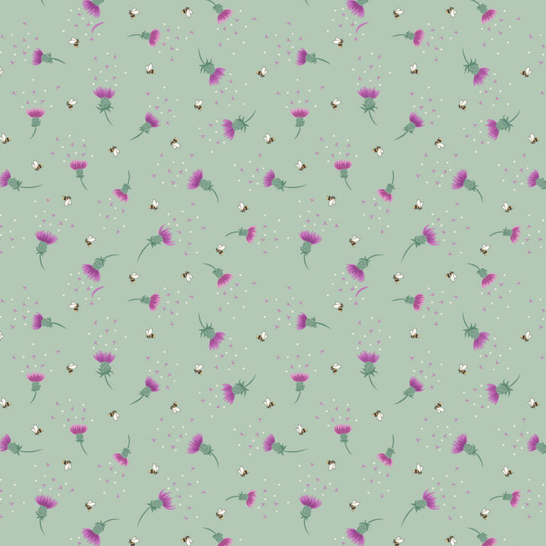 Sage Green Bee Thistle - Cotton Print